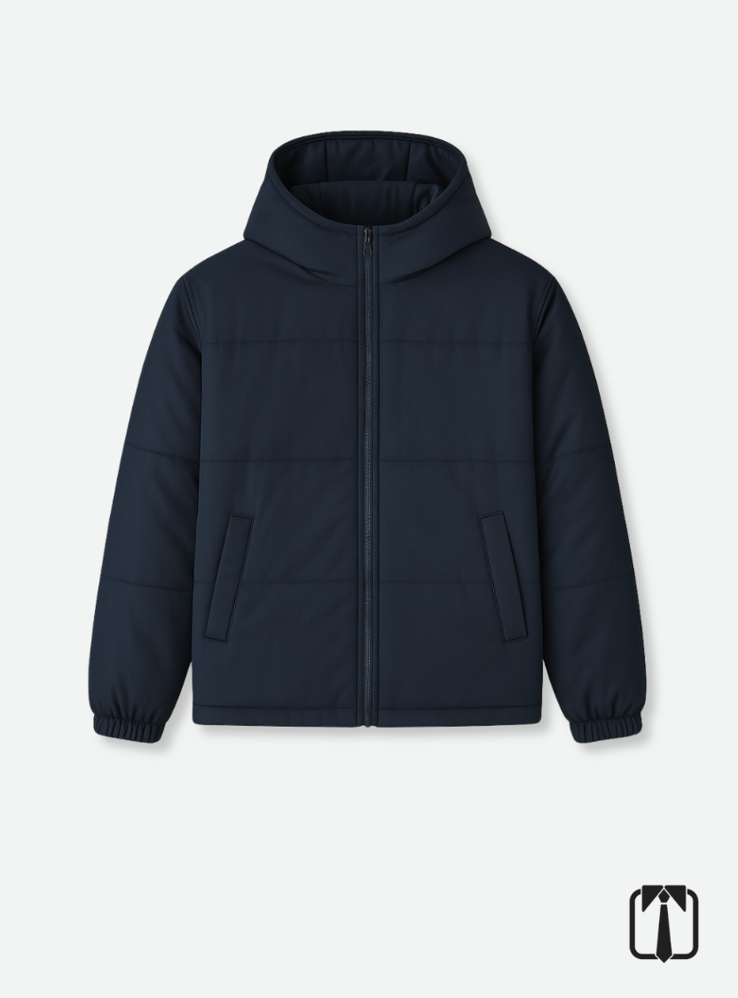 Tu Parka Puffer Hoodie Azul Marino Genérico en alta calidad y hecha en Chile con Fair Trade. Toda la tela de Uniforma es tejida de formal local a pedido para nuestra empresa. Encuentra aquí más sobre el nuevo proyecto de Uniforma